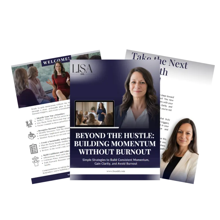 Lisa Uhl is a business strategist, coach, and educator who helps women business owners create clarity, confidence, and sustainable momentum. Through coaching, strategic guidance, and digital education delivered via the Momentum Mindset App, Lisa blends smart business strategy,mindset, and stress management - so growth no longer comes at the expense of well-being.